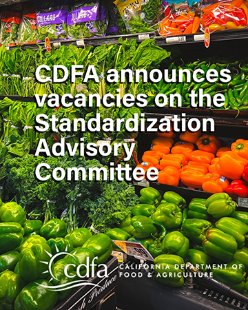 The California Department of Food and Agriculture (CDFA) is announcing vacancies on the Standardization Advisory Committee (STDZ).