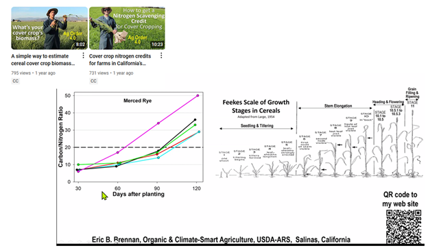 Snapshots of Dr. Eric Brennan’s educational videos about cover crop N scavenging used in the project’s education events.